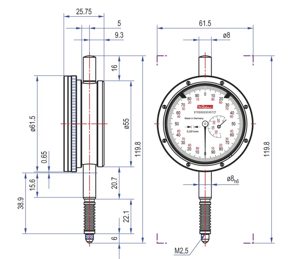 • Auswechselbarer Messeinsatz M2,5Lieferung:Im Kunststoffetui.Hersteller:Käfer Meßuhrenfabrik GmbH & Co. KG, Hahnstr. 11, 78054 Villingen-Schwenningen, DE, +49772083410, info@kaefer-messuhren.de
